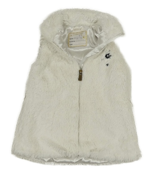 Biela chlpatá zateplená vesta s výšivkou Orchestra