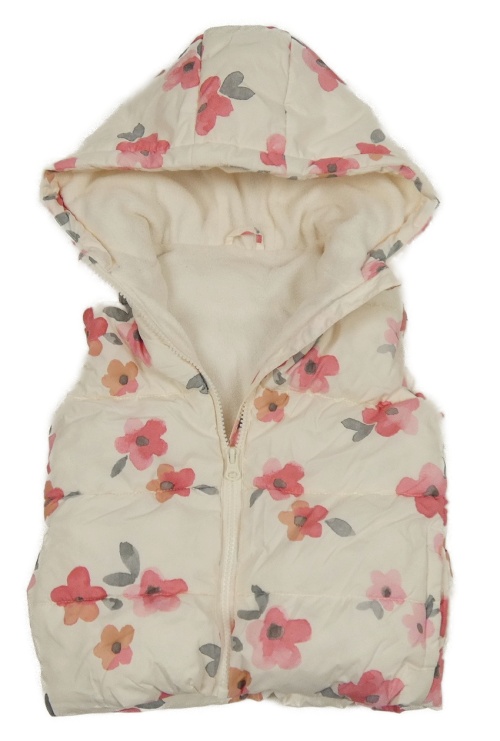 • Smotanová prešívaná šušťáková zateplená vesta s kvietkami a kapucňou St. Bernard