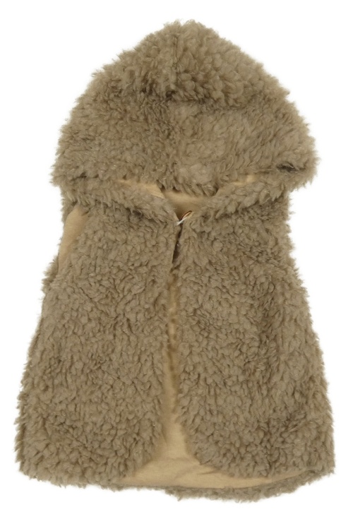 Hnedá kožušinová podšitá vesta s kapucňou