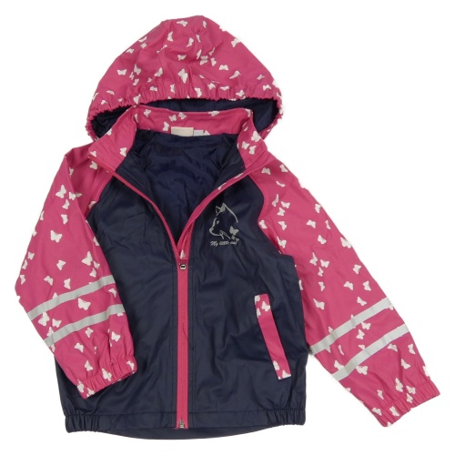 • Tmavomodro-ružová nepromokavá jarná bunda s mačkou a odopínacíá kapucňou Kids