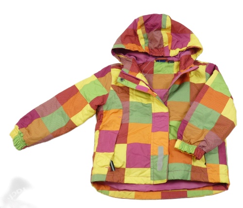 Žlto-ružovo-zelená kockovaná šušťáková zateplená bunda s kapucňou Lupilu