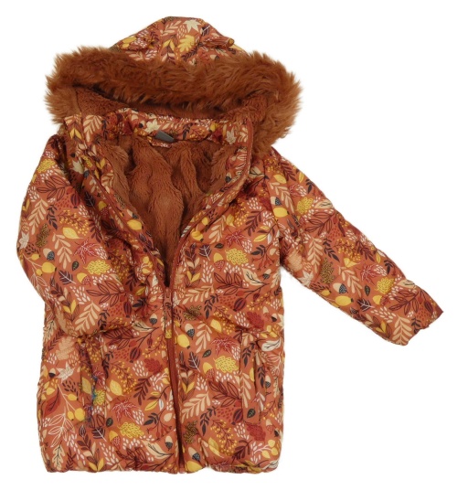 Hnedá šušťáková zimná bunda s listami a kapucňou Little Kids