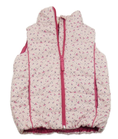 Svetloružová prešívaná šušťáková zateplená vesta s kvietkami Kids