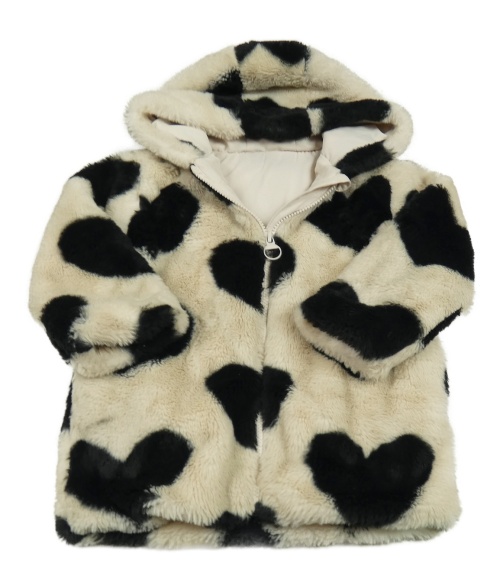 • Smetanovo-čierny kožušinový podšitý kabát so srdiečkami a kapucňou St. Bernard