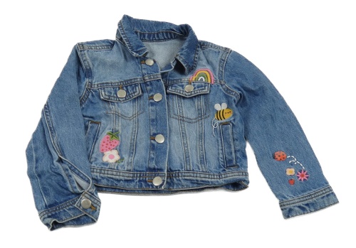 Modrá rifľová crop bunda s výšivkami Nutmeg