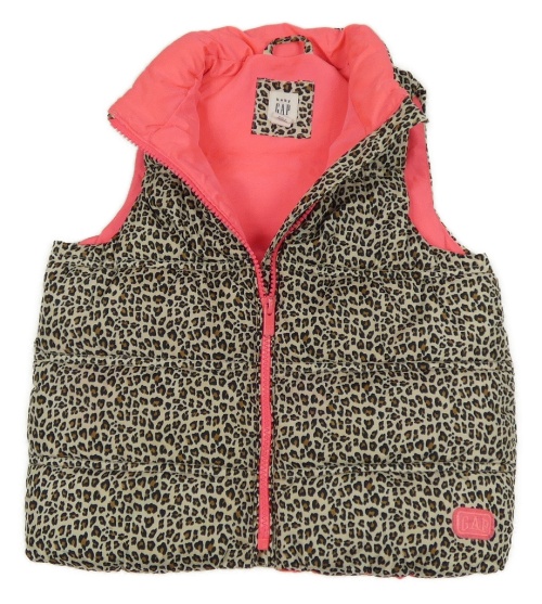 Béžovo-čierno-hnedá šušťáková zateplená vesta s leopardím vzorom GAP