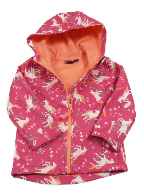 Ružová softshellová bunda s jednorožcami a kapucňou Mountain Warehouse