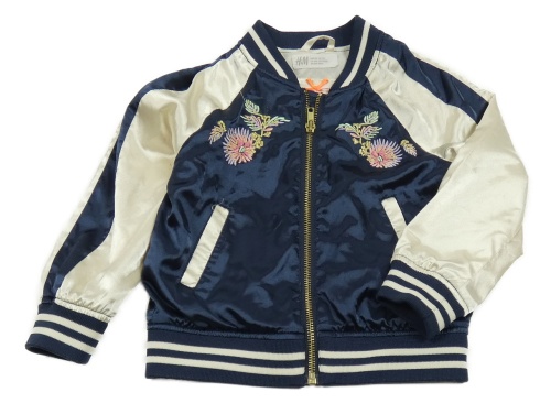 Tmavomodro-smotanová saténová podšitá bunda s kvietkami H&M