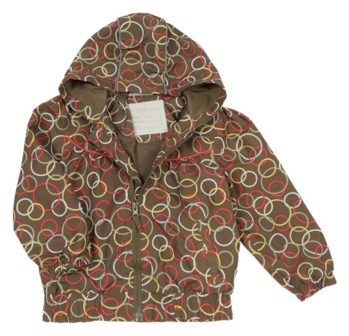 Hnedá šušťáková jarná bunda so vzorom a kapucňou