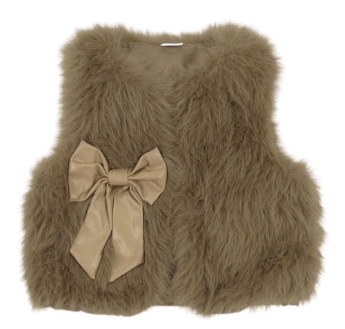 Hnedá kožušinová podšitá vesta s 3D mašlou