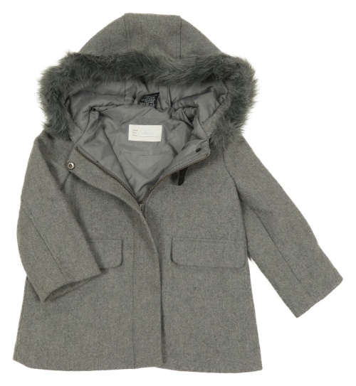 Sivý vlnený podšitý kabát s kapucňou