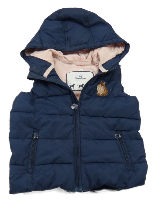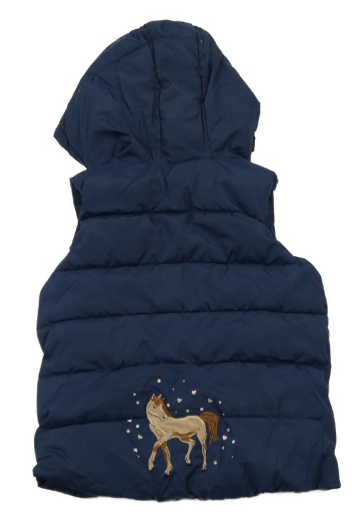 Tmavomodrá šušťáková zateplená vesta s koněm a kapucňou Topolino