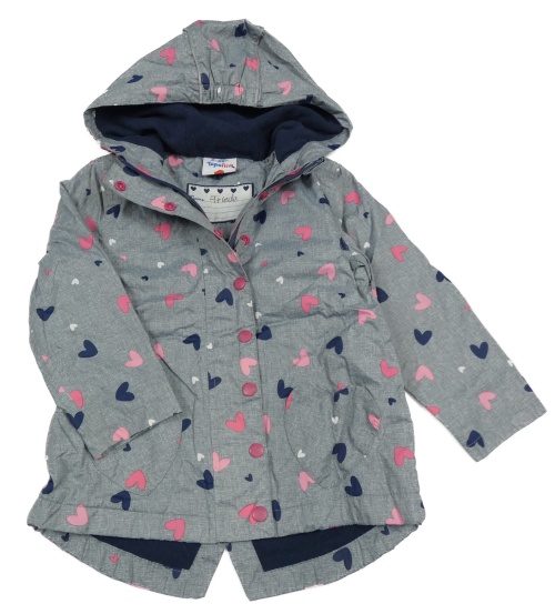 Sivá šušťáková jarná bunda so srdiečkami a kapucňou Topolino