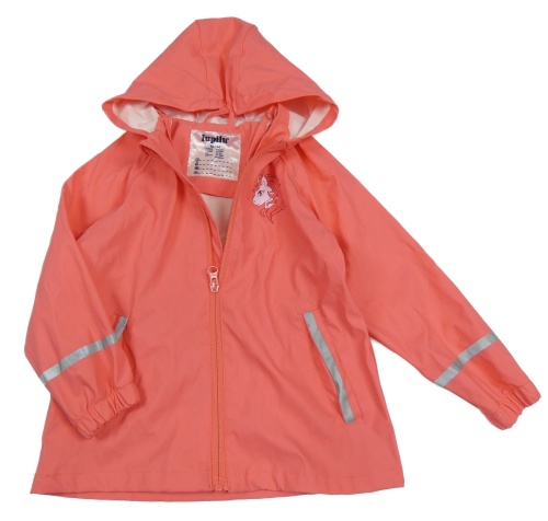 Korálová vodeodolná jarná bunda s jednorožcom a kapucňou Lupilu