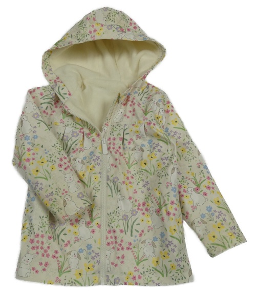 Smotanová kvetovaná nepromokavá jarná bunda s králikmi a kapucňou Dunnes
