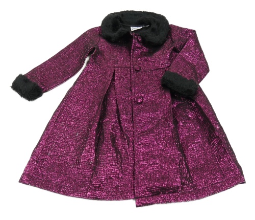 Tmavorůžovo-čierny lesklý ľahký kabát s kožešinovým lemem