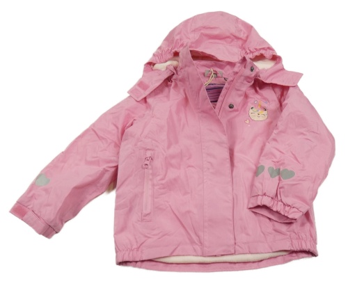 Ružová šušťáková jarná bunda s mačičkou a odopínacíá kapucňou impidimpi