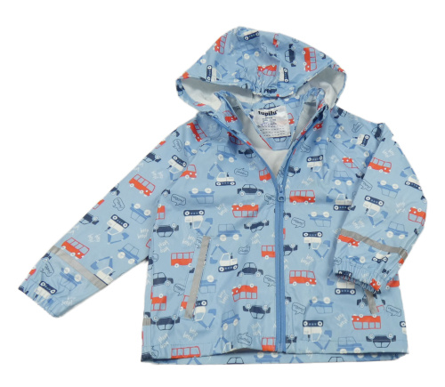 Svetlomodrá nepromokavá bunda s autami a kapucňou Lupilu