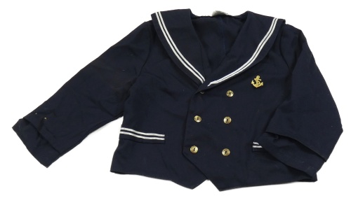 Tmavomodrý kabátek s kotvou a prúžkami
