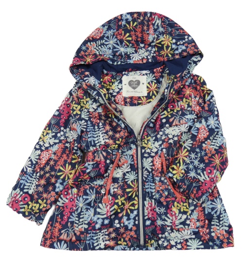 Tmavomodrá šušťáková jarná zateplená parka s kvietkami a kapucňou F&F