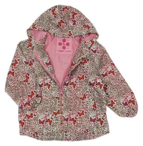 Svetloružová šušťáková jarná bunda s motýly a kapucňou Tu