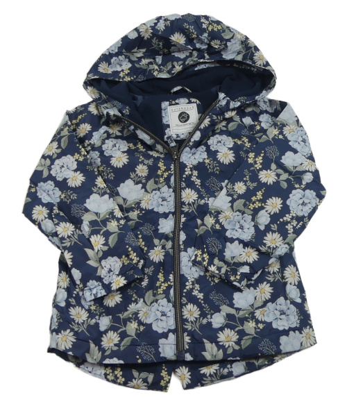 Tmavomodrá kvetovaná šušťáková jesenná bunda s kapucňou Tu