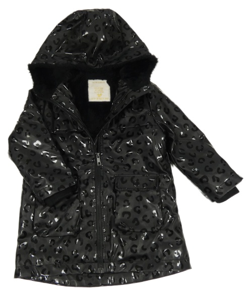 Čierny vzorovaný nepromokavý zateplený kabát s kapucňou Matalan