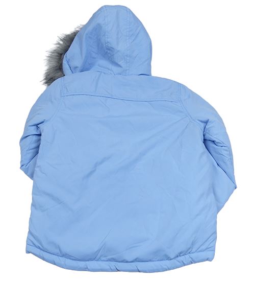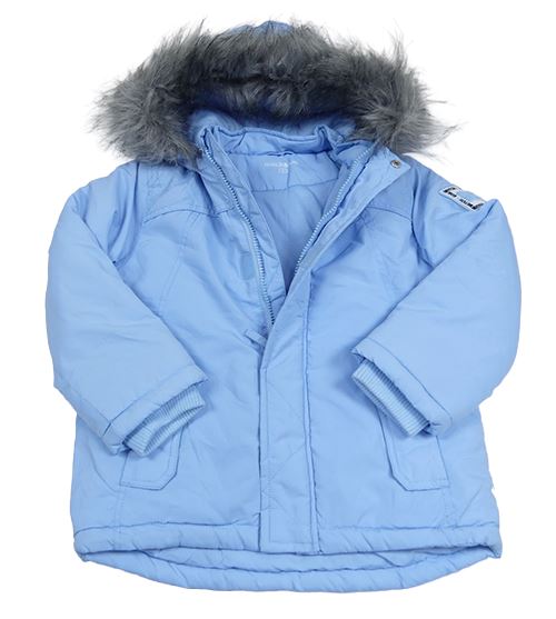 Svetlomodrá šušťáková zimná bunda s nášivkou a kapucňou