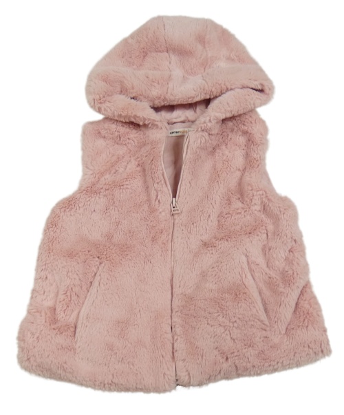 Svetloružová kožušinová podšitá vesta s kapucňou