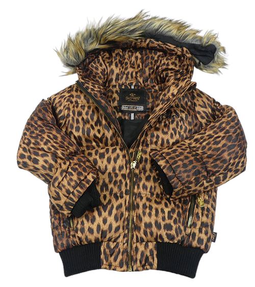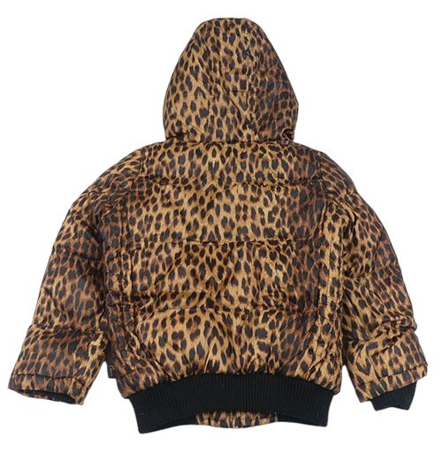 Hnědo-černý vzorovaný prošívaný šusťákový zimní bomber s kapucňou s kožešinou