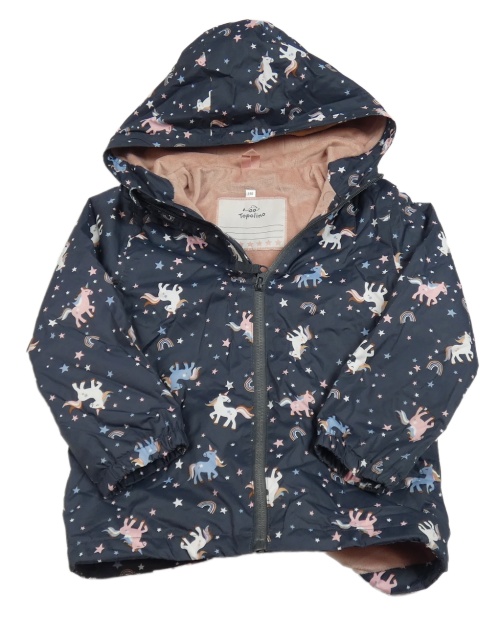 Tmavosivá šušťáková zateplená bunda s jednorožcami a kapucňou Topolino
