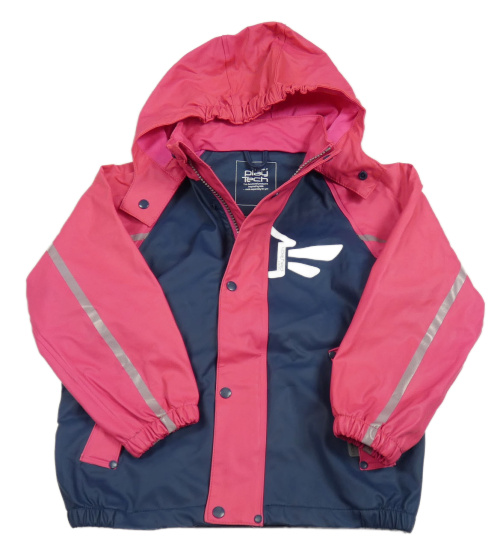 Neónově ružovo-tmavomodrá nepromokavá bunda s nápisom a kapucňou