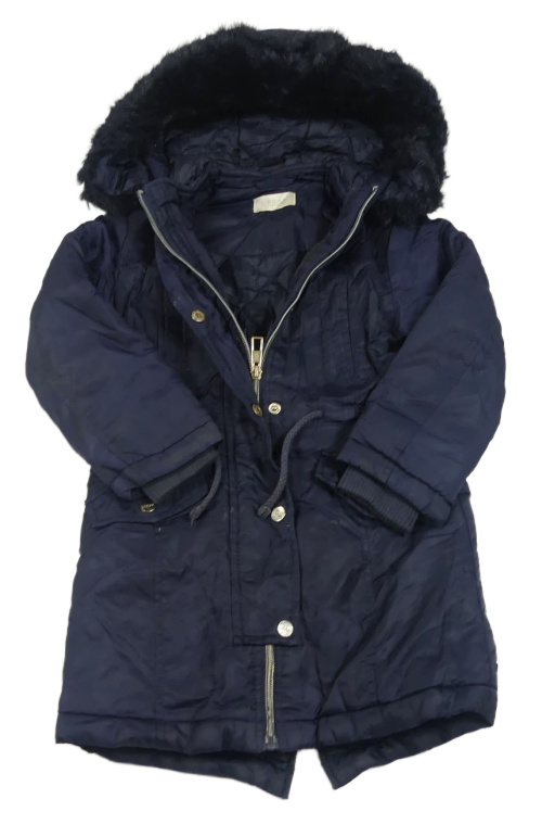 Tmavomodrá šušťáková zimná parka s kapucňou s kožešinou LIPSY LONDON