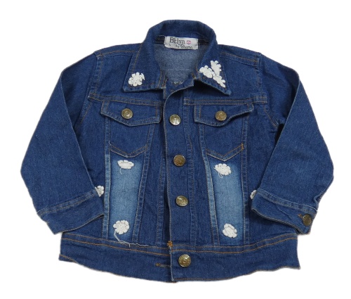 Tmavomodrá tepláková rifľová bunda s kvetmi