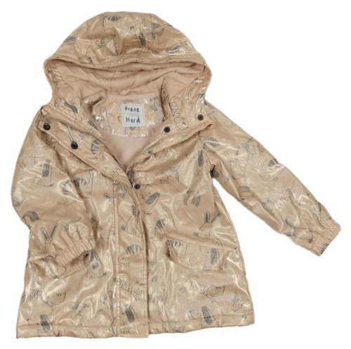Svetloružová trblietavá nepromokavá zateplená bunda s pejsky a kapucňou Next