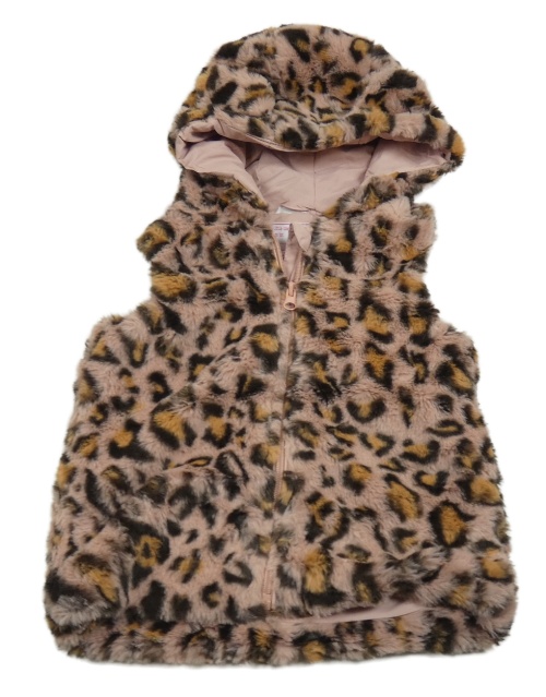 Staroružová kožušinová zateplená vesta s leopardím vzorom a kapucňou M&Co.