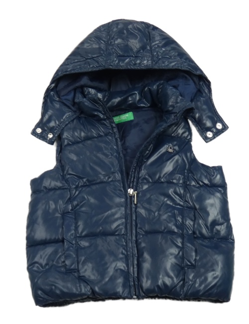 Tmavomodrá šušťáková lesklá zateplená vesta s kapucňou Benetton