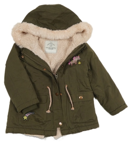 Khaki zimná parka s jednorožcom a kapucňou George