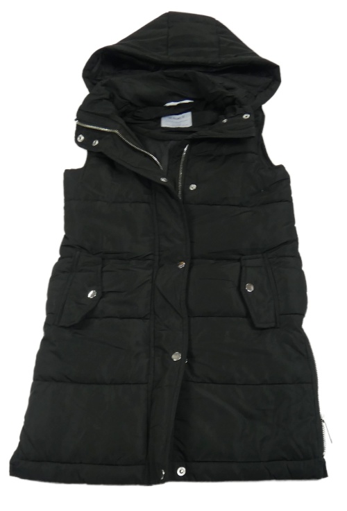 Čierna šušťáková dlhá zateplená vesta s kapucňou M&Co.