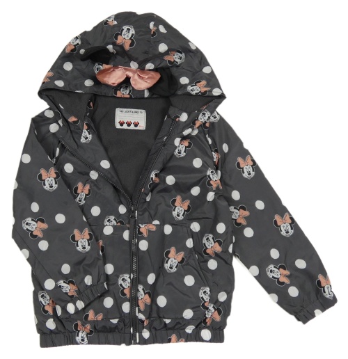 Tmavosivá bodkovaná á šušťáková jarná bunda s Minnie a kapucňou Disney