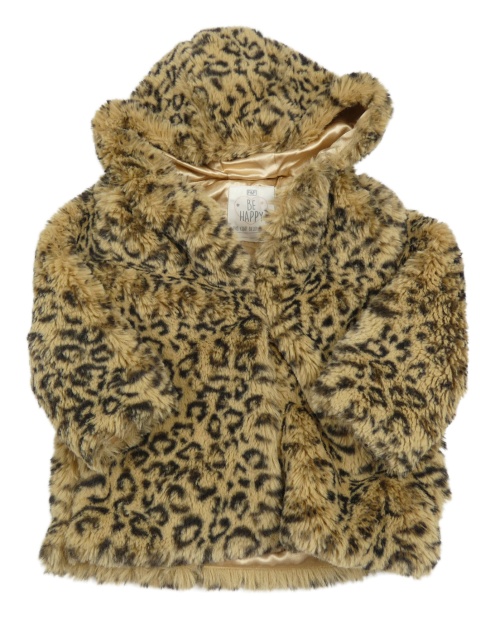 Béžovo-čierna kožušinová podšitá bunda s leopardím vzorom a kapucňou F&F