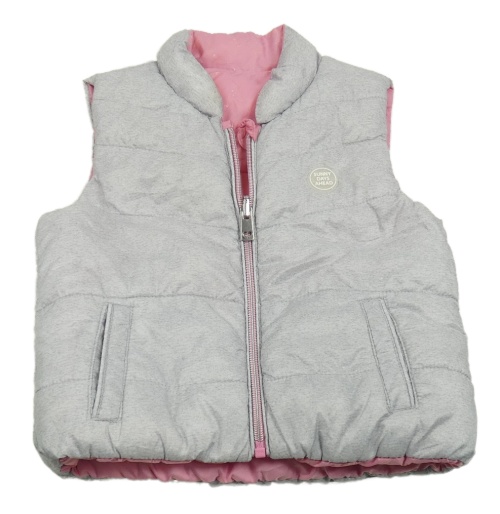 Ružová prešívaná šušťáková zateplená obojstranná vesta so srdiečkami C&A