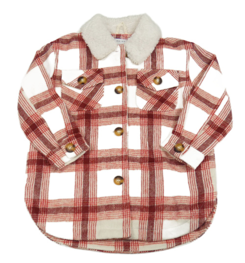Bielo-červená kockovaná košeľová bunda s beránkem Primark