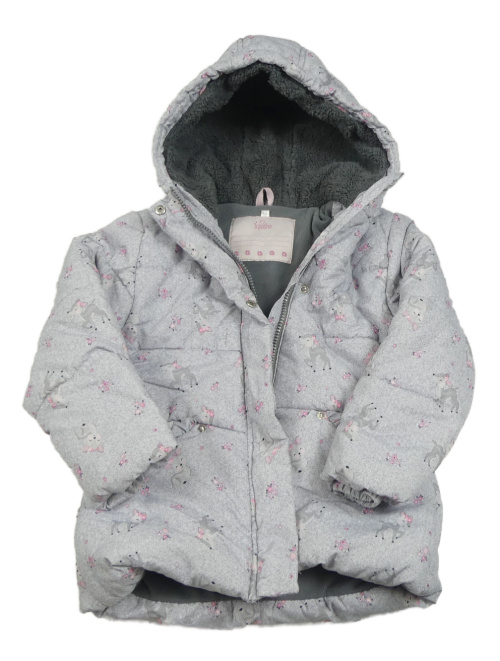 Sivá vzorovaná šušťáková zimná bunda so srnkami a kapucňou Topolino