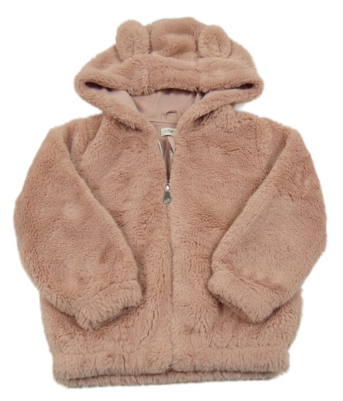 Pudrová kožušinová podšitá bunda s kapucňou s uškami F&F