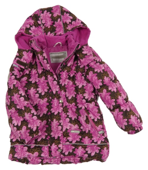 Ružovo-hnedá kvetovaná šušťáková zimná bunda s kapucňou
