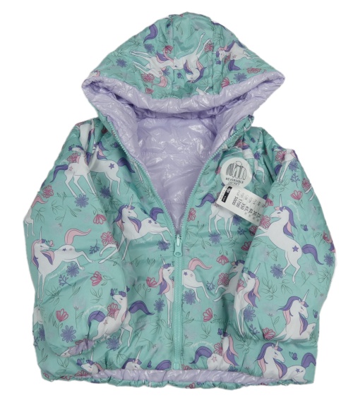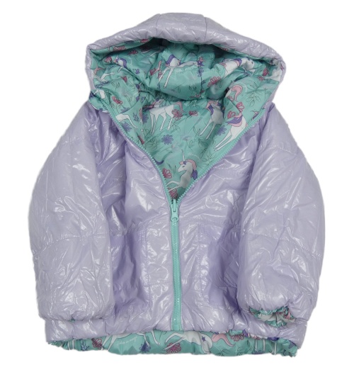 Nové - Lila šušťáková lesklá zimná obojstranná bunda s kapucňou Little kids