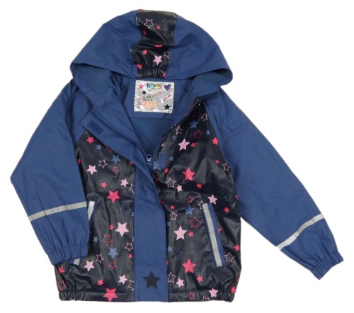 Modro-tmavomodrá hviezdičkovaná nepromokavá jarná bunda s kapucňou Lupilu