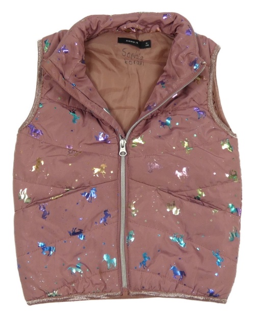 Staroružová šušťáková zateplená vesta s jednorožcami Name it