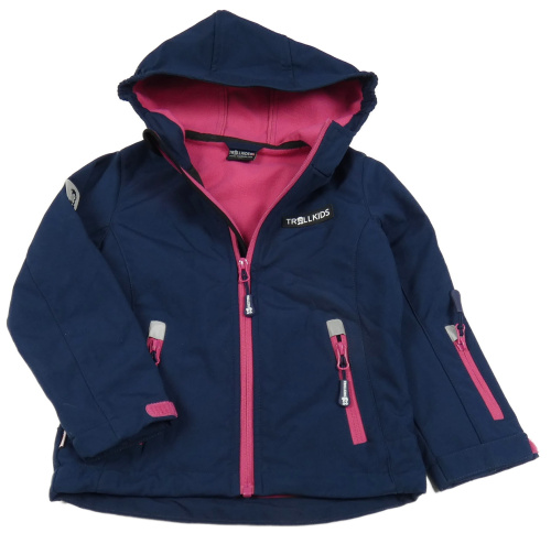 Tmavomodro-ružová sofhshellová bunda s kapucňou Troll Kids